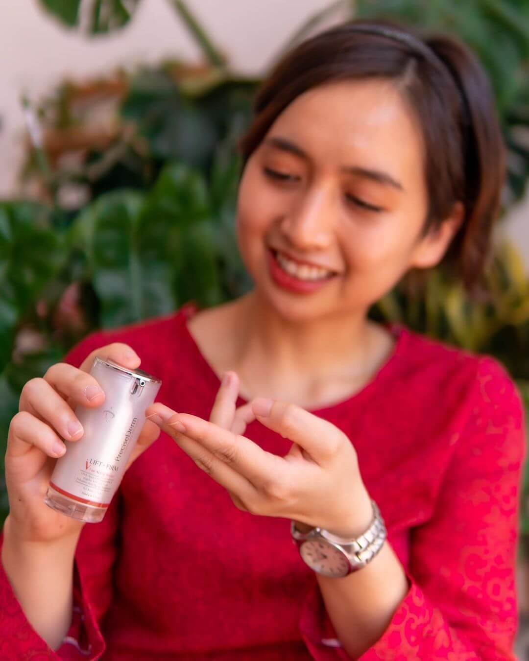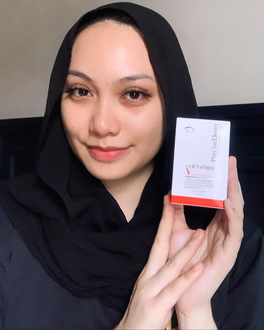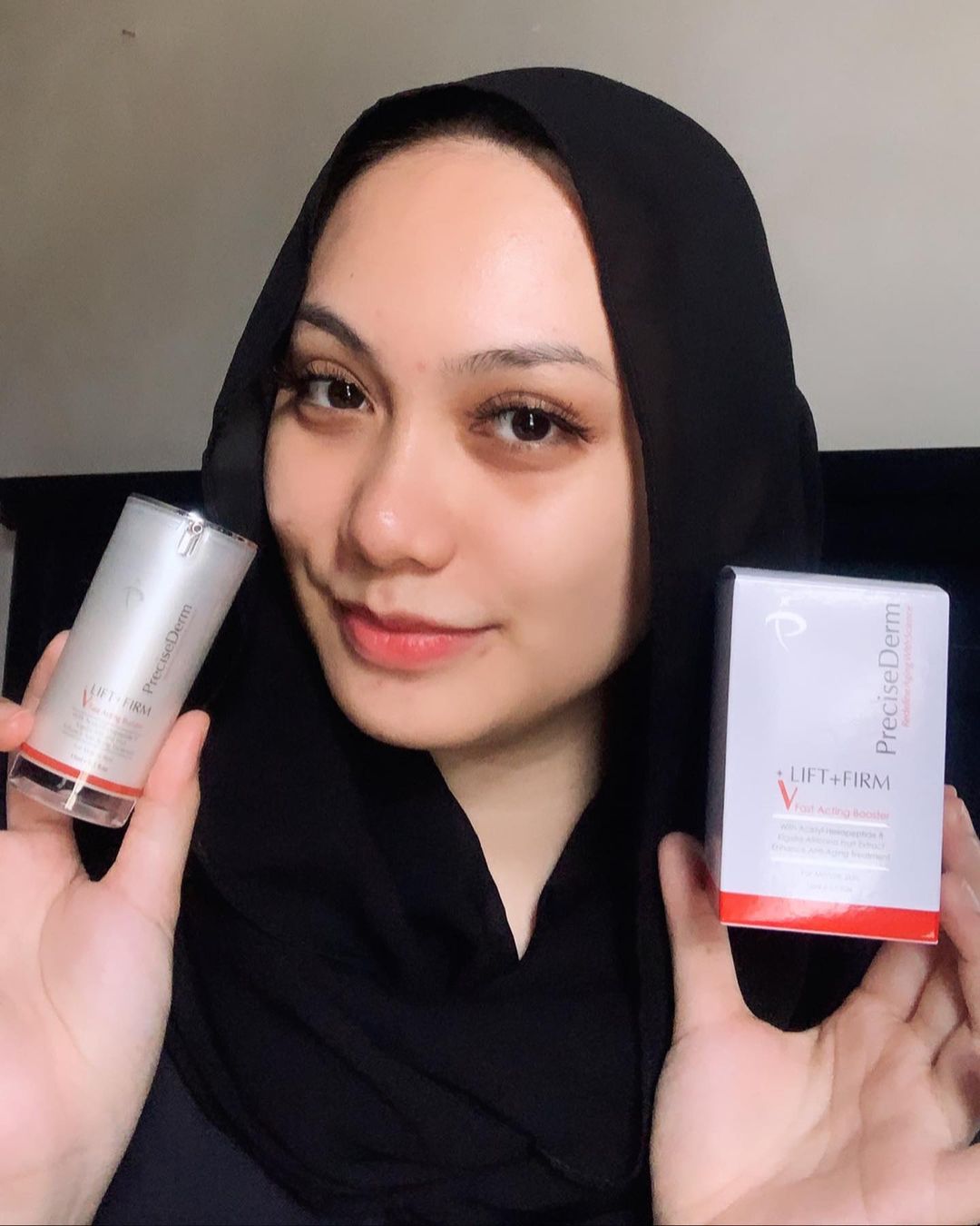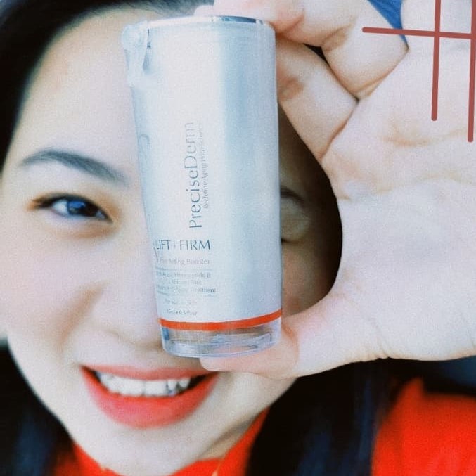 After toning, I apply PreciseDerm Lift + Firm Fast Acting Booster on my whole face including eye areas.